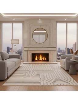 Tapis Moderne Blanc & Beige Clair – Doux, Lavable,...
