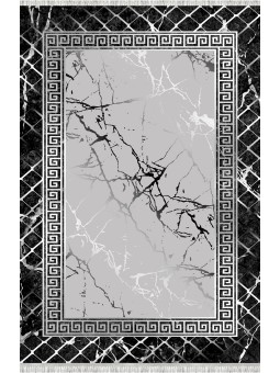 Tapis moderne marbré gris & noir avec motif grec, impression...