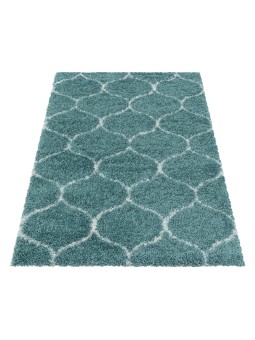 Tapis de salon Shaggy Design à carreaux Tile Jacquard Beu