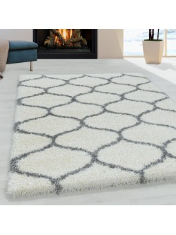 Tapis de salon Shaggy Design à carreaux Tile Jacquard Crème