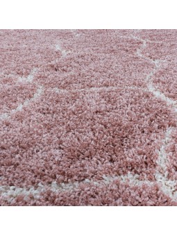 Tapis de salon Shaggy Design à carreaux Tile Jacquard Rose