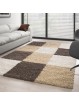 Tapis Shaggy pile longue designe à carreaux MARRON-BLANC-BEIGE