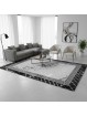 Ce tapis moderne joue sur l’élégance du marbre gris et noir associée à une bordure grecque raffinée pour un intérieur au style sophistiqué