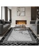 Tapis moderne marbré gris & noir avec motif grec, impression numérique, lavable, antidérapant, idéal salon chambre bureau
