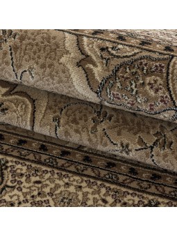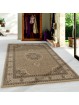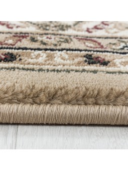 Tapis de salon oriental à poil ras Motif de bordure ornement Beige
