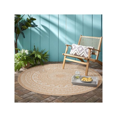 Tapis d'extérieur, Design vintage, Couleur Beige, Tapis pour Terasse-Balcon-Cuisine, dos en polypropylène,100 % PP. Heatset Friese, Hauteur des poils: 3 mm, 76.800 Points, 1600 gr (±%5)M2, dos en polypropylène