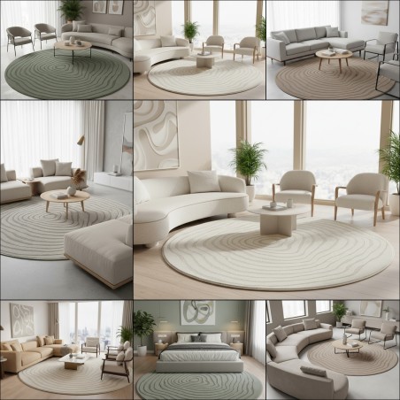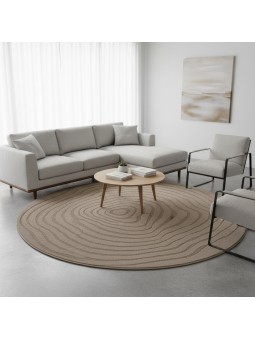 Ce tapis rond moderne se distingue par un motif organique composé de lignes ondulées superposées qui créent un relief doux et continu. Le dessin apporte une impression de mouvement naturel et une profondeur visuelle élégante, tout en conservant une atmosphère équilibrée et apaisante. Sa surface structurée enrichit l’espace sans le surcharger, ce qui le rend idéal pour un salon, une chambre ou un coin détente au style contemporain. Le tissage précis assure une bonne stabilité et un confort durable pour un usage quotidien.