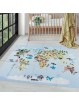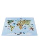 Tapis enfants à poils courts Motif de carte du monde Animaux Blanc Bleu