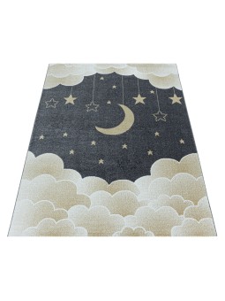 Tapis pour enfants à poil ras Motif de étoilé nuage lune Jaune