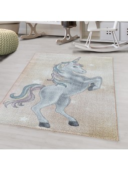 Tapis pour enfants à poil ras Motif de licorne étoile Jaune