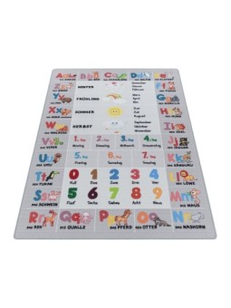 Tapis pour enfant, Alphabet - Lettres - Chiffres - Motifs animaux, Couleur Gris, Tapis pour Chambre d'enfants, dos en Latex, 100 % Polyamide, Hauteur des poils: 8 mm, 1200 gr (±%5)M2, Dos en latex