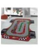 Tapis pour enfant, Conception de piste de course, Couleur Rouge, Tapis pour Chambre d'enfants, dos en Latex, 100 % Polyamide, Hauteur des poils: 8 mm, 1200 gr (±%5)M2, Dos en latex