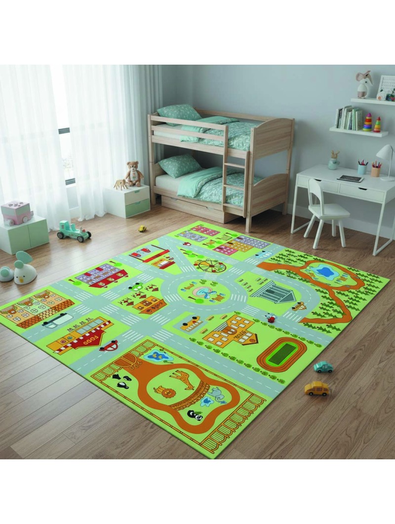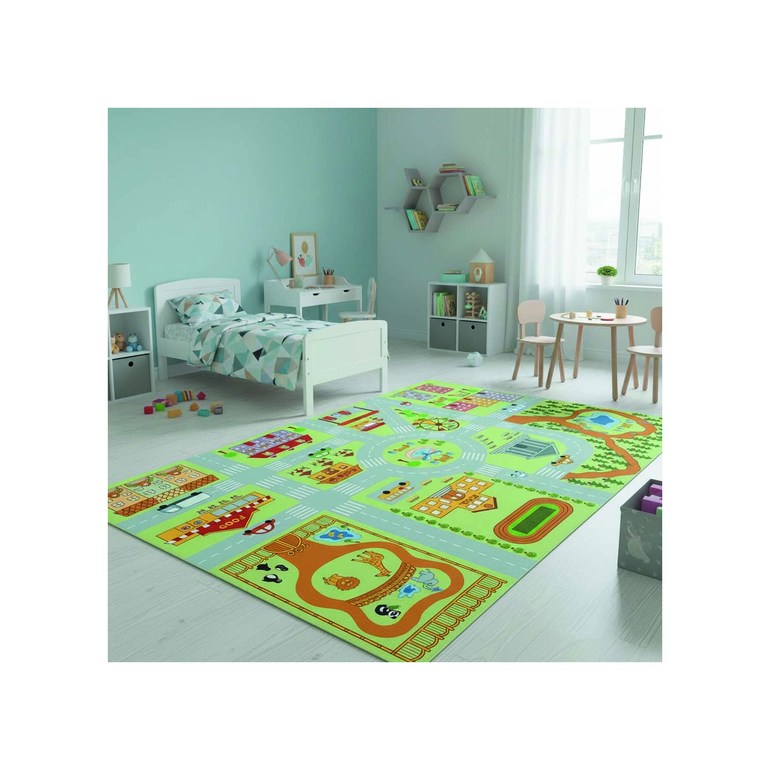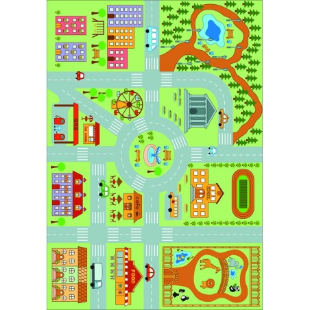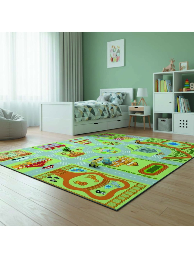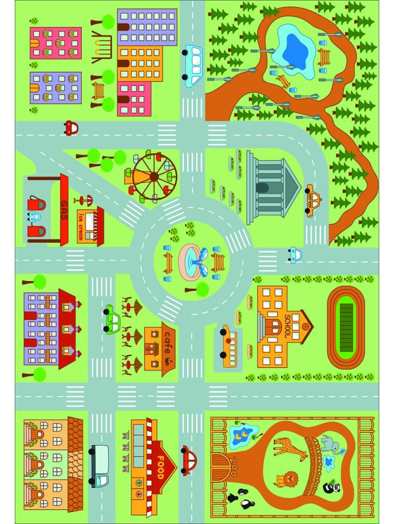 Ce tapis éducatif pour enfants représente une ville amusante avec école, zoo, parc, fontaine, cafés, routes et parkings. Idéal pour jouer avec des petites voitures tout en apprenant à se repérer dans l’espace. Son design coloré stimule l’imagination et favorise les jeux de rôle. Impression numérique haute qualité avec surface douce et confortable. Base antidérapante pour jouer en toute sécurité dans la chambre d’enfant ou la salle de jeux.