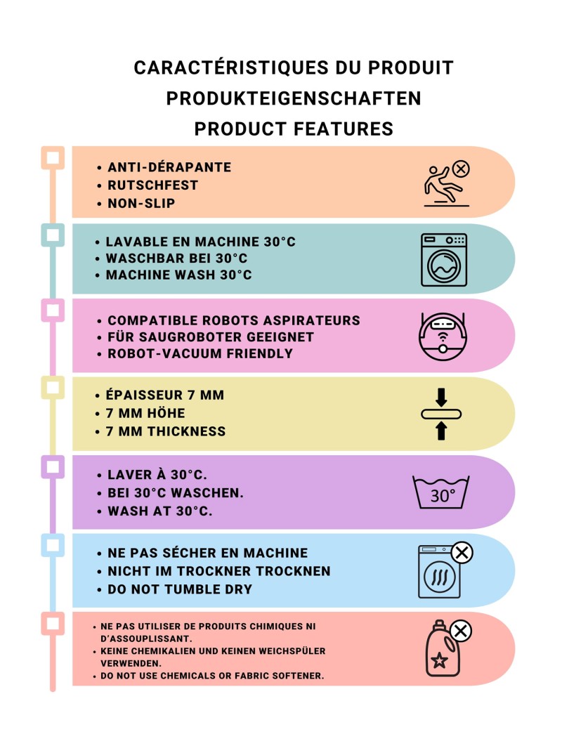• Utilisation : Chambre d’enfant, école maternelle, aire de jeux