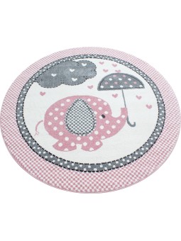 Tapis chambre d´enfant éléphant parapluie pluie de cœur Gris-Blanc-Rose