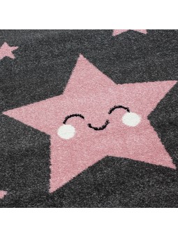 Tapis chambre d´enfant étoile filante Gris-Rose
