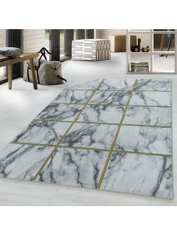Tapis design a poil ras Tapis de salon Motif Marbré carré Couleur Or