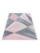Tapis à poils courts, Geometrisch Design, Couleur Rose, Tapis pour Salon, dos en jute,100 % PP. Friese, Hauteur des poils: 10 mm, 240.000 Points, 2200 gr (±%5)M2, Dos en Jute