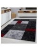 Tapis à poils courts, Motif à carreaux, Couleur Rouge, Tapis pour Salon, dos en jute,100 % PP. Friese (Hund Carved), Hauteur des poils: 13 mm, 246.000 Points, 2800 gr (±%5)M2, Dos en Jute