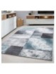 Tapis à poils courts, Motif à carreaux, Couleur Bleu, Tapis pour Salon, dos en jute,100 % PP. Friese (Hund Carved), Hauteur des poils: 13 mm, 246.000 Points, 2800 gr (±%5)M2, Dos en Jute