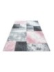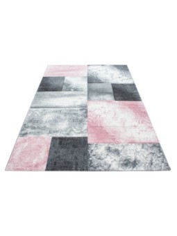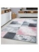 Tapis à poils courts, Motif à carreaux, Couleur Rose, Tapis pour Salon, dos en jute,100 % PP. Friese (Hund Carved), Hauteur des poils: 13 mm, 246.000 Points, 2800 gr (±%5)M2, Dos en Jute