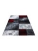 Tapis à poils courts, Motif à carreaux, Couleur Rouge, Tapis pour Salon, dos en jute,100 % PP. Friese (Hund Carved), Hauteur des poils: 13 mm, 246.000 Points, 2800 gr (±%5)M2, Dos en Jute