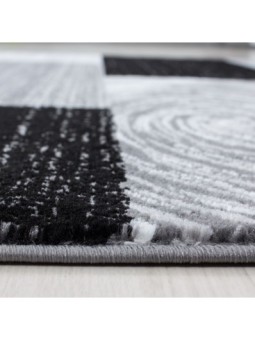 Tapis à poils courts, Abstraite Motif à carreaux, Couleur Noir, Tapis pour Salon, dos en jute, 100 % PP. Heatset, Hauteur des poils: 12 mm, 280.000 Points, 1900 gr (±%5)M2, Dos en Jute