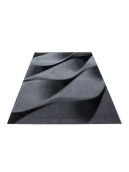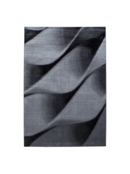 Tapis à poils courts, Conception de vagues abstraites, Couleur Noir, Tapis pour Salon, dos en jute, 100 % PP. Heatset, Hauteur des poils: 12 mm, 280.000 Points, 1900 gr (±%5)M2, Dos en Jute