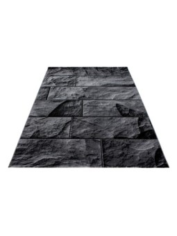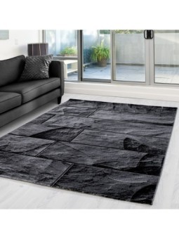 Tapis à poils courts, Conception en pierre, Couleur Noir, Tapis pour Salon, dos en jute, 100 % PP. Heatset, Hauteur des poils: 12 mm, 280.000 Points, 1900 gr (±%5)M2, Dos en Jute