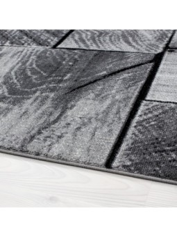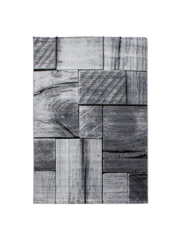 Tapis à poils courts, Conception en bois 3D, Couleur Noir, Tapis pour Salon, dos en jute, 100 % PP. Heatset, Hauteur des poils: 12 mm, 280.000 Points, 1900 gr (±%5)M2, Dos en Jute