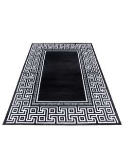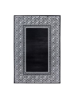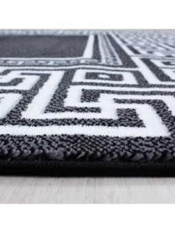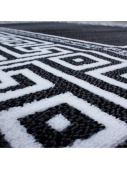 Tapis à poils courts, Conception de méandres, Couleur Noir, Tapis pour Salon, dos en jute, 100 % PP. Heatset, Hauteur des poils: 12 mm, 280.000 Points, 1900 gr (±%5)M2, Dos en Jute