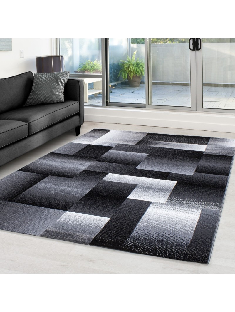 Tapis moderne au motif géométrique abstrait composé de blocs superposés en dégradés de gris et de noir. L’effet ombré crée une profondeur visuelle élégante et contemporaine, idéale pour sublimer un salon, séjour, chambre ou bureau. Velours dense, résistant et facile d’entretien.