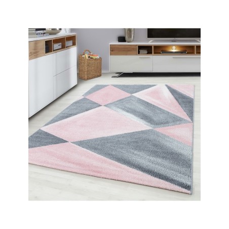 Tapis à poils courts, Geometrisch Design, Couleur Rose, Tapis pour Salon, dos en jute,100 % PP. Friese, Hauteur des poils: 10 mm, 240.000 Points, 2200 gr (±%5)M2, Dos en Jute