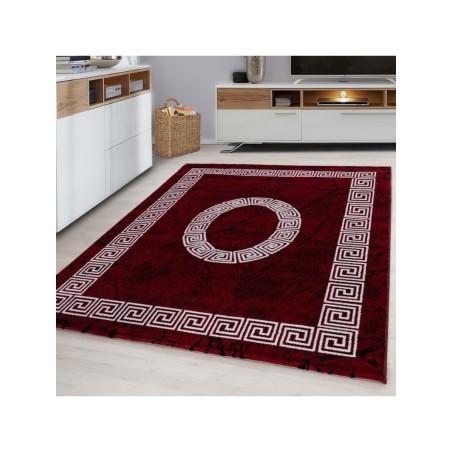 Tapis à poils courts, Conception de méandres, Couleur Rouge, Tapis pour Salon, dos en jute, 100 % PP. Heatset, Hauteur des poils: 6 mm, 249.000 Points, 1400 gr (±%5)M2, Dos en Jute