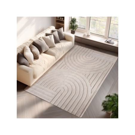 Tapis Boho Scandinave couleur unie crème, doux, facile d'entretien, lavable effet 3D, Tapis pour Salon et chambre à coucher, 100% Microfaser, Hauteur des poils: 12 mm, 1150 gr (±%5)M2, Dos en coton