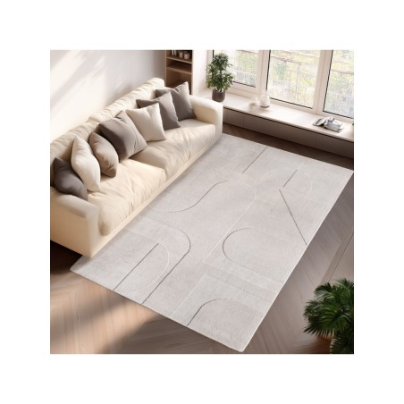 Tapis Boho Scandinave couleur unie crème, doux, facile d'entretien, lavable effet 3D, Tapis pour Salon & chambre à coucher, 100% Microfaser, Hauteur des poils: 12 mm, 1150 gr (±%5)M2, Dos en coton