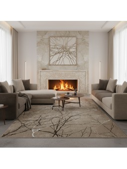 Ce tapis moderne gris se distingue par un motif artistique mêlant des branches abstraites fines et des lignes rappelant des veines de marbre. Les formes naturelles s’entrelacent sur toute la surface et créent une composition élégante et contemporaine qui apporte de la profondeur visuelle à l’espace. Le contraste subtil entre les tons gris, crème et marron renforce l’aspect décoratif tout en conservant une atmosphère douce et équilibrée. Ce design moderne s’intègre facilement dans un salon, une chambre ou un espace de vie contemporain et devient un élément décoratif central sans surcharger l’intérieur. Grâce à sa structure dense et à son tissage précis, le tapis offre une surface confortable et une excellente tenue pour un usage quotidien.