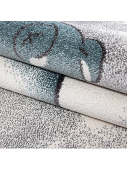 Tappeto per cameretta bambini con orso che pesca stelle e nuvole, grigio-bianco-blu