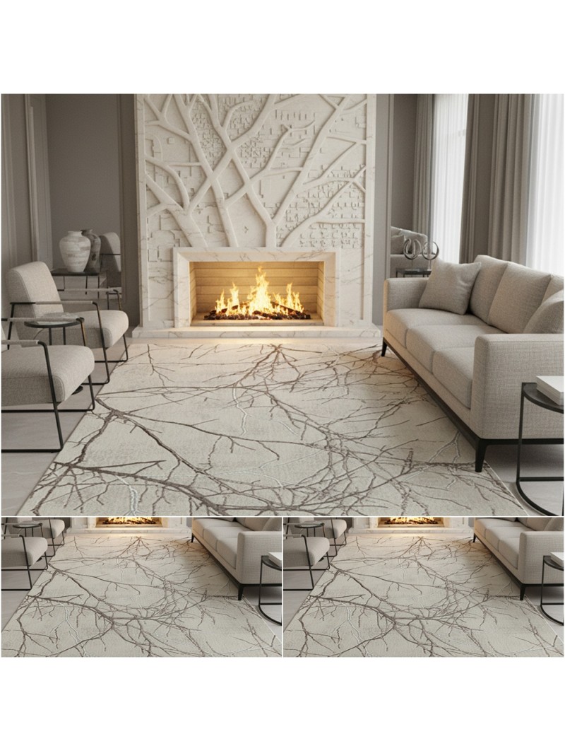 Questo moderno tappeto grigio presenta un motivo artistico che fonde delicati rami astratti con linee che ricordano le venature del marmo. Forme naturali si intrecciano su tutta la superficie, creando una composizione elegante e contemporanea che aggiunge profondità visiva allo spazio. Il sottile contrasto tra i toni del grigio, del crema e del marrone esalta il fascino decorativo, mantenendo al contempo un'atmosfera morbida ed equilibrata. Questo design moderno si integra facilmente in un soggiorno, in una camera da letto o in un soggiorno contemporaneo, diventando un punto focale senza sopraffare l'arredamento. Grazie alla sua struttura fitta e alla trama precisa, il tappeto offre una superficie confortevole e un'eccellente resistenza per l'uso quotidiano.