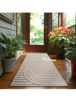 Tappeto da esterno beige, resistente alle intemperie e ai raggi UV, per cucina, balcone, patio, giardino, soggiorno e sala da pranzo, design scandinavo Boho, facile da pulire, 100% polipropilene, tessitura piatta, 1300 g (±5%) m², supporto in filato fibrillato