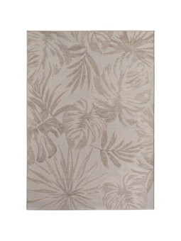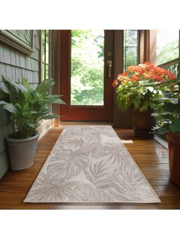 Tappeto da esterno beige, resistente alle intemperie e ai raggi UV, per cucina, balcone, patio, giardino, soggiorno e sala da pranzo, motivo a foglie di palma, facile da pulire, 100% polipropilene, tessitura piatta, 1300 g/m², supporto in filato fibrillato
