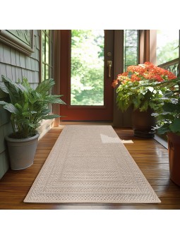 Tappeto da esterno beige, resistente alle intemperie e ai raggi UV, per cucina, balcone, patio, giardino, soggiorno e sala da pranzo, design a tinta unita con bordo, facile da pulire, 100% polipropilene, tessitura piatta, 1300 g (±5%) m², supporto in filato fibrillato