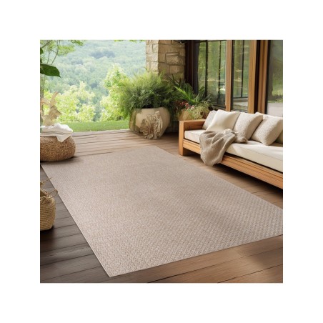 Tappeto beige per interni ed esterni, resistente alle intemperie e ai raggi UV, ideale per cucina, balcone, terrazza, soggiorno e sala da pranzo, tinta unita in stile bohémien, 100% polipropilene, tessitura piatta, 1500 g (±5%) m², supporto in filato fibrillato