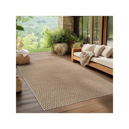 Tappeto beige per interni ed esterni, resistente alle intemperie e ai raggi UV, ideale per cucina, balcone, terrazza, soggiorno e sala da pranzo, motivo a quadri in stile bohémien, 100% polipropilene, tessitura piatta, 1500 g (±5%) m², supporto in filato fibrillato