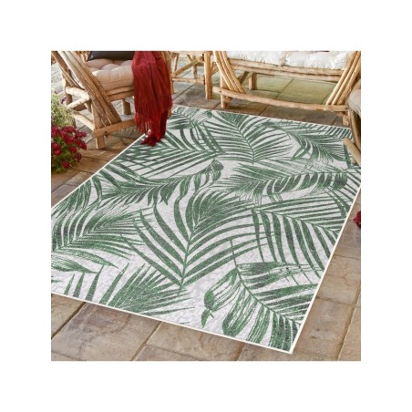 Tappeto da esterno, motivo palma, verde, tappeto per patio/balcone/cucina, supporto in polipropilene, 100% PP Heatset Fries, altezza pelo: 3 mm, 86.900 punti, 1300 g/m², supporto in polipropilene