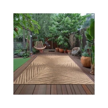 Questo tappeto per interni/esterni, con il suo delicato motivo botanico, dona un tocco naturale e caldo ai vostri spazi. Il suo aspetto naturale in juta si integra perfettamente sia negli interni moderni che negli ambienti esterni coperti.