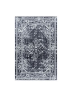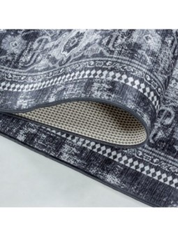 Tappeto classico antiscivolo lavabile in lavatrice, stile Orient Vintage, nero e grigio.
