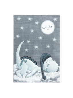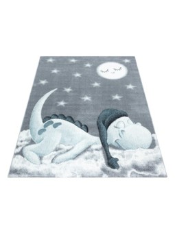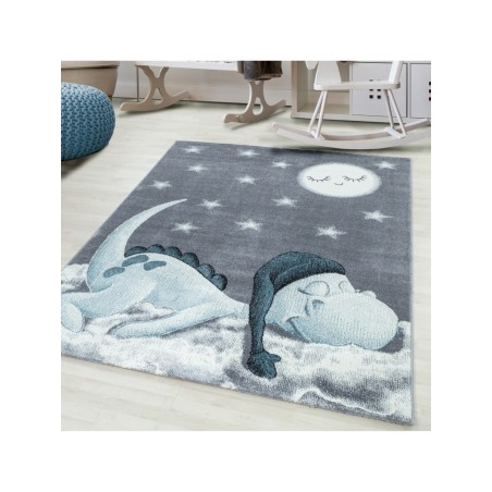 Kinderkleed, dinosauruspatroon, blauw, babykamerkleed, jute achterkant, 100% PP Friese, poolhoogte: 10 mm, 240.000 steken, 2200 g/m², jute achterkant