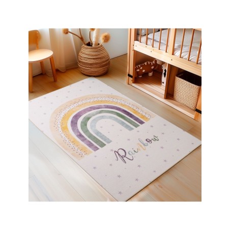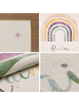 Kinderkleed, regenboogpatroon, crèmekleur, kinderkamerkleed, latex achterkant, 100% polyamide, poolhoogte: 8 mm, 1200 g (±5%)m², latex achterkant