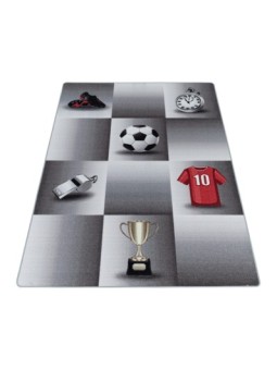 Kinderkleed, voetbaldesign, grijs, kinderkamerkleed, latex achterkant, 100% polyamide, poolhoogte: 8 mm, 1200 g/m², latex achterkant